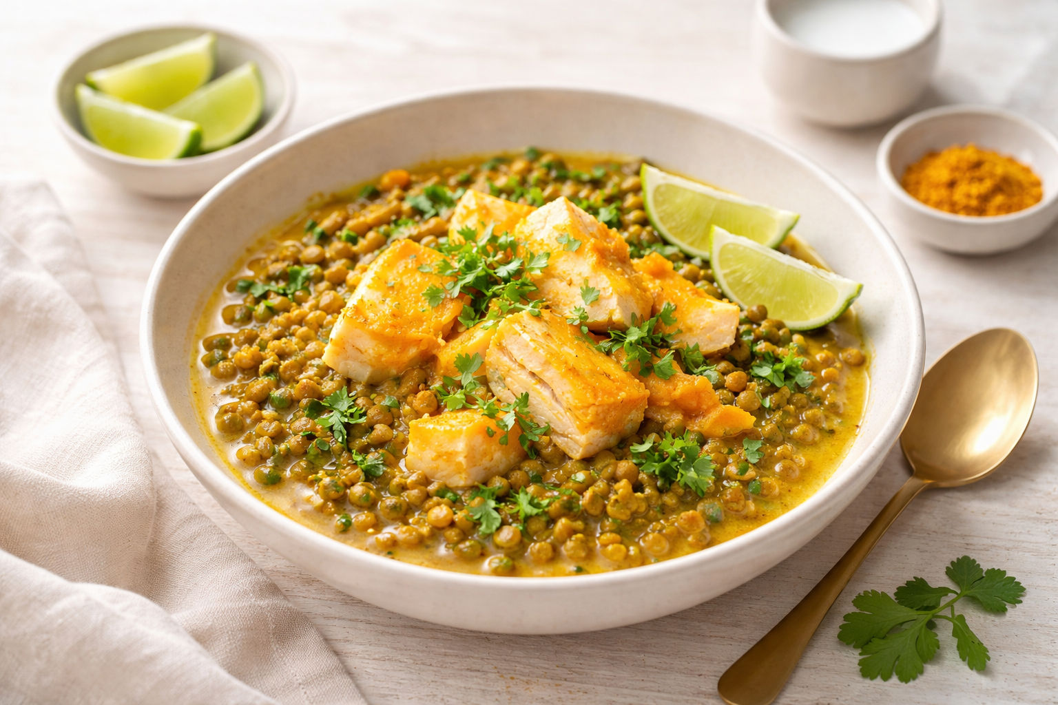 Un plat complet riche en fibres et en protéines, avec des lentilles à IG bas et des légumes pour un repas rassasiant et équilibré.