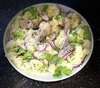 Disposer le chou-fleur dans un plat, ajouter le hareng coupé en lanières.
